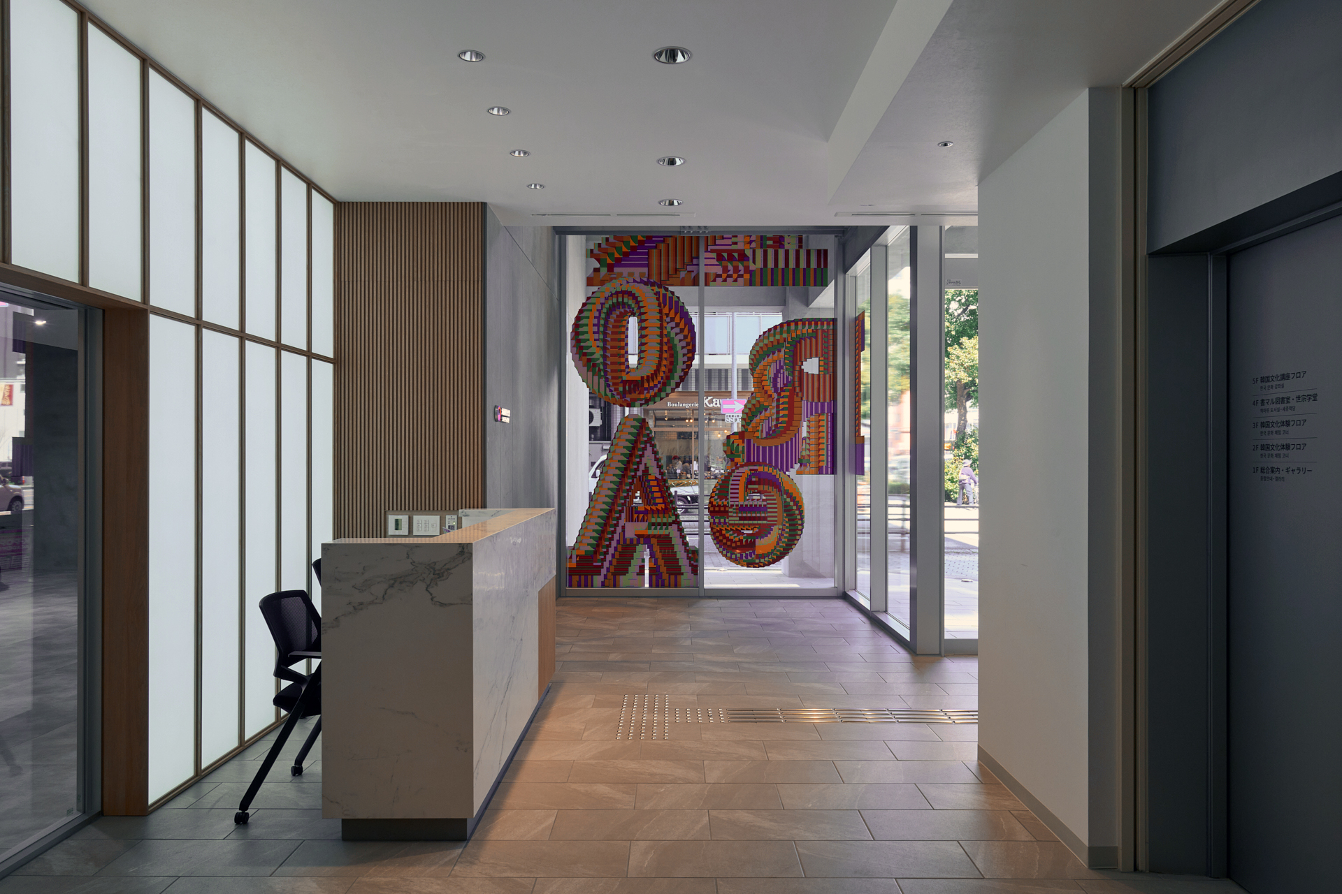 On the first floor, most of the existing walls were retained to ensure sufficient exhibition space, while some of the former medical pipeline trenches were repurposed as embedded lighting pits. Additionally, the reception area, which was previously recessed and lacked natural light, was transformed into a bright space using an illuminated wall designed like a shoji screen. The second-floor area facing the atrium was converted into an inner terrace, serving as a direct connection between the center's activities and the surrounding community.